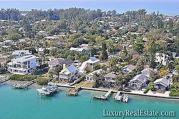 The Ultimate Boathouse, a secluded haven located on Longboat Key, situated directly on Sarasota Bay with open Gulf waters just seconds away. A mariner's paradise, this waterfront oasis features three boat docks with lifts and views of Jewfish Key. Emanating Coastal Cottage architecture, this revitalized waterfront estate gracefully integrates the original bungalow with a recent rear addition and newly constructed detached front cottage. A multi-faceted residence with several guest quarters, multiple gathering spaces and kitchens. Able to accommodate numerous guests with two guest suites in the main house and two private guest suites in the front cottage. There are also three kitchens on-site; the guest cottage has a cleverly designed concealed kitchenette. The main house has the original bungalow's eat-in kitchen, and the second floor master suite features its own gourmet galley. A charming island inspired decor gently drifts throughout, a splendid use of select finishes including; crown molding, bead board, granite, marble, and terrazzo creating a comfortable and inviting home. The recently added second floor loft creates a spacious self-contained living space with master suite, gathering area, scenic screened balcony and complete galley kitchen. Taking advantage of year round outdoor living this residence features a screened pool area with spa and large deck overlooking the brilliant water. 2 Fireplaces, fully fenced yard perfect for the pet owner!Low maintenance yard, no HOA fees or dues.