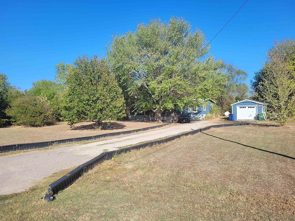 This property will be offered at public auction Saturday Nov. 5th at 12:00. Manufactured home located in south Wichita on a 1 Acre lot. Split bedroom floor plan. All the appliances remain with the home including the stove, refrigerator, dishwasher and washer/dryer. The home is updated with vinyl windows and has a covered deck on the front and two decks on the back of the home. Single car garage with an opener and a storage shed. Mature trees on the property. The home is connected to city water, propane and a septic system. The location of the area is near Pine Bay Estates with a golf course that you drive by coming or going. Nice paved streets.