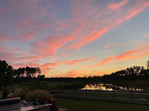 2 story semi-custom built home with professional kitchen, oversized island, added sunroom and oversized bonus/bedroom with separate AC unit. Lot features views of Magnolia Green golf holes #1 & 2, plus directly on pond (only water view in Magnolia Green)! Home features a full paver patio along entire width of home which is perfect for viewing the golf course, water view and sunset!