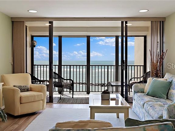 Live your beach life dream for real in this extraordinary, picture-perfect, Gulf-front unit at Envoy Point. With direct water views from the open kitchen, living room, and master, this unit has been fully remodeled and is ready to move in. The very spacious kitchen has multiple areas of bar seating for perfect entertaining and features gorgeous granite countertops with stainless sink and fixtures, subway glass tile backsplash, modern and timeless soft-close cabinetry with straight sticking and glass door accents, tons of thoughtfully-designed storage, Kenmore Elite refrigerator with water and ice, microwave, cooktop, oven, and dishwasher. In the back of the kitchen, there is a super-cute built-in desk area with additional counter space and storage, plus gigantic views all the way to downtown St. Petersburg. You'll enjoy extraordinary direct Gulf and beach views from the master bedroom, with a balcony access and large walk-in closet, and the master bath has a modern and stately vanity with solid surface counters, chrome fixtures and sconces, and beachy beadboard wainscoting. The guest bedroom has sweeping inland views. To top it off, this unit is sold fully furnished and decorated with incredibly charming beach chic touches that will perfectly complement your new oceanfront lifestyle. Envoy Point is a unique, gated, 2-building complex on the edge of Blind Pass, featuring 2 pools, gym, rec room, and a truly stunning tropical beachfront garden with winding paths and idyllic lairs.