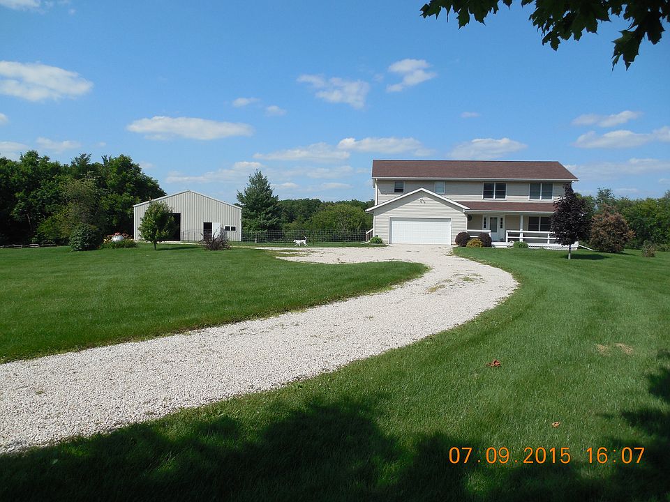 7.7 acres with stocked lake, timber and open area Large one-owner 2 story home; 2,552 total sq ft on main and upper level, 1,096 sq ft in basement Upper level has 4 bedrooms and 2 full baths including master suite; master has an 8 x 13 walk-in closet Main level has living room with wood burning/gas lighter fireplace, kitchen with eat-in area with sliding doors out to deck, dining room, office and half bath Walk-out basement has a room that could be used as a 5th bedroom, full bath (shower) and laundry room New roof in 2011 with 3 tab, 25 year comp. shingles New furnace and air conditioner in 2011 New water heater in 2013; also has iron filter and water softener that stay All appliances can stay: new front loading washer, dryer, fridge with water/ice/crushed ice in door, new glass top electric stove, new dishwasher High-speed DSL has been run to the house for fast online access; real plaster walls throughout; many others extras as well. Building is 40 x 60 with full concrete floor