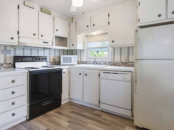CLICK THE VIRTUAL TOUR LINK FOR A VIDEO WALK THROUGH - Welcome Home. Enjoy the Spacious and comfortable floor plan in this 2 Bedroom 2 Bathroom Double Wide home. Located on a corner of the serene cul de sac gives you the best of both worlds. The 31 ft. carport provides plenty of parking as well as an outdoor area for entertaining. This ample outdoor space also includes the storage shed with a washer and dryer, grill and shelving for all your tools and Florida toys. The built up roof over is great for insulation and along with 12 new windows is great for keeping this home cooler in those Florida summers. Step inside a spacious living room with berber carpet and all new windows. The dining room is very large, bringing in lots of light from the floor to ceiling windows. A perfect space for entertaining with the L Shaped Granite counter and breakfast bar that opens to both the dining and living room. The Kitchen has lots of storage with all the cabinets, a window above the double sink with new faucet, dishwasher and pull out shelving in the pantry. The guest bathroom has laminate flooring, tub and shower, new toilet, with lots of cabinets for storage. The second bedroom is a very nice size with furniture in place for guests. New subflooring in most of the home has already been completed. The large master bedroom has carpet and can easily accommodate a king size bed. The en suite bathroom with walk in shower is an added bonus. BIG ticket items are DONE; Newer plumbing, New HVAC System, roofover, new thermopane windows, upgraded electric. So don't hesitate to schedule your private showing in this meticulously maintained home ready for your personal touches. So come and check out this hidden Gem. Ownership: Land-lease Age Restrictions: 55+ (1st occupant ), 45+ (2nd occupant ) Pet Policy: 1 indoor cat, no dogs. Lot Rent: $1,050/monthly includes; trash, lawn care, and all community amenities (more than any other community in Pinellas County). Pass Ons: $68/month on average; water, sewer, cable t.v and high speed internet (at a discounted rate) Ranchero Village has more amenities than any other manufactured home community in Pinellas County, to include 3 pools, 3 clubhouses, spa, 2 saunas, 10 court shuffleboard, 4 tennis courts (2 illuminated for night play), pickleball, bocce ball, 3 lakes, 1 with a large gazebo, covered barbecue pavilion, putting green and driving cage, horseshoes, billiards and a new fitness building with new exercise equipment. A short drive to 2 international airports and award winning Gulf of Mexico beaches. All listing information is deemed reliable but not guaranteed and should be independently verified by licensed professionals. We do not guarantee or warrant the accuracy of this information, measurements, or condition of any property.