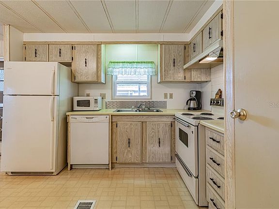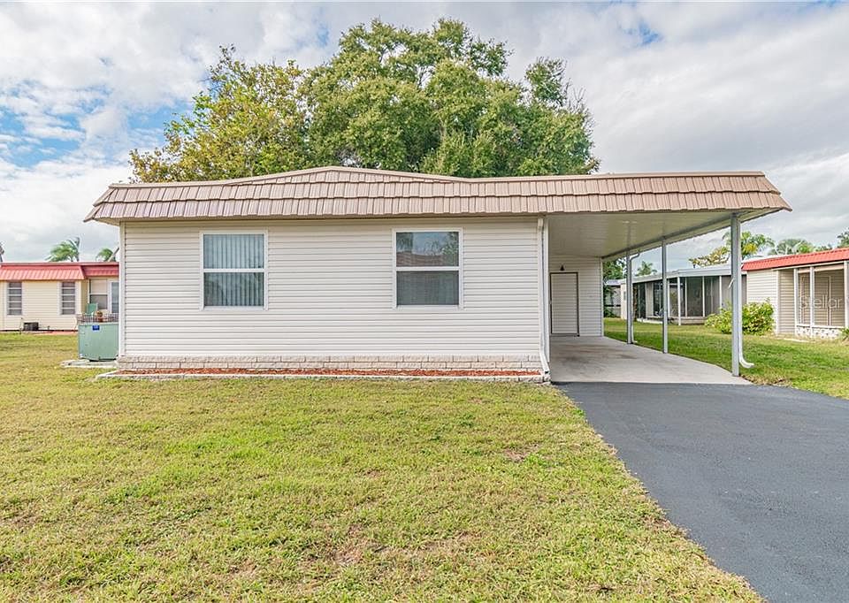 Wonderful two bedroom two full bathroom mobile home located in the premier resident owned community of Ranchero Village Largo, FL. This home has the exterior upgrades you are looking for including; quality insulated roof over, vinyl siding and double pane insulated glass windows throughout the home. The mansard (decorative brown) roof has just been professionally painted looking brand new. The kitchen is very spacious and roomy with nice appliances, plenty of cabinets and counter space including a brand new dishwasher. There is also table space for two in the kitchen for those nice morning breakfasts. The dining room has a very nice built-in with glass displays, a large mirror, and lots of storage. The master bedroom is very roomy and has two closets with one being a walk-in. The second bathroom has a brand new shower with plenty of shelving and space. The living room is a nice open space that is very warm and relaxing with a sliding glass door adding natural light that opens directly to the 13'x19' florida room with it's own door to the backyard. This home sits on a very quiet cul de sac with the lot being uniquely positioned providing more room between neighbors than most lots in the community. There is a very nice open space garden lot in the rear of the home with a large tree offering nice cool shade and a lovely gazebo for use by the homeowner. You can also build up-to an eight foot patio in the rear (with permission) expanding your outdoor space for cookouts and get togethers.