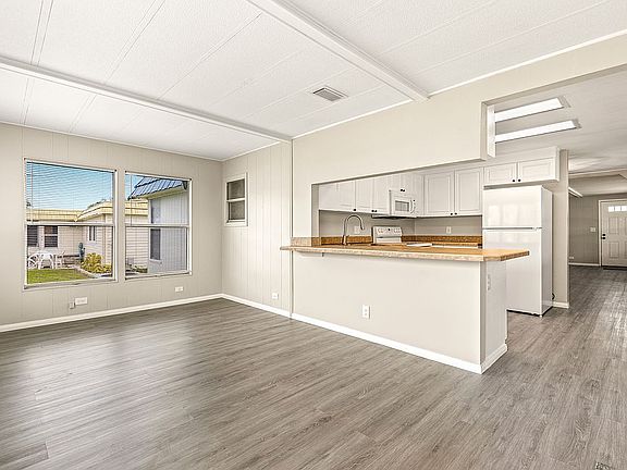 Reduced to $43,000 from $57,000—act now for an unbeatable deal on this must-have mobile home! This complete remodeled unit is located in the stunning community of Ranchero Village and includes: Spacious! 1,260 sqft of living space • 2 bedrooms and 2 bathrooms • Gorgeous Sun Room • Open floor plan • Updated Appliances • Pet friendly • BRAND NEW top-of-the-line TPO roof • Washer and Dryer (included) • Brand new vinyl plank flooring • Cozy remote-controlled fireplace Step inside to an open, bright, and spacious living area filled with natural light, featuring new appliances, fresh paint, and newly laid vinyl plank floors. The exterior boasts: • Long 2 car covered carport • Attached Storage Unit w/ covered walkway Enjoy an exceptional community with amazing amenities including: • 3 swimming pools • fresh exterior paint • beautifully designed landscaping ?• fitness center • 3 clubhouses • shuffleboard courts • lighted tennis courts • bocce ball Located just minutes from Florida’s most serene beaches. This home is located inside the pet section, so bring your furry friend (under 30lbs). Land leased fee includes all the fantastic amenities, Cable & WiFi, Water, plus lawn care, and trash pick up for $1200 monthly.