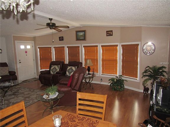 This property includes the co-op share, ownership interest in the entire 127 acre vacation style community of Ranchero Village in Largo, located centrally to Clearwater, St. Pete and Tampa, Tampa Bay Gulf Coast. One of the finest properties in the community with upgrades galore. The upgrades include vinyl siding, roof over, quality insulated glass double pane windows, new plywood subflooring in the entire primary living area, new high quality wood laminate flooring in the living room and dining room, new vinyl kitchen flooring, beautiful custom wood cabinets and island with matching cabinets in the dining room and inside washer and dryer utility room. King size master bedroom, double bowl vanity in large master bath, large Florida room with insulated glass windows. Custom plantation shades, cathedral ceilings. One dog to 30 pounds permitted, cat(s) also welcome. End of cul-de-sac lot with large open space on the side of the property. Ranchero Village offers 3 pools, 3 clubhouses, spa, saunas, 10 court shuffleboard, bocce ball, tennis, fitness, billiards, horseshoes, and mini golf. A friendly 55 Plus resident owned community of year round residents and those residents that enjoy the winter season for a low monthly fee of $308. No furnishings included in the sale. Property has no furniture. The furniture photos remain for display of the property on this site.