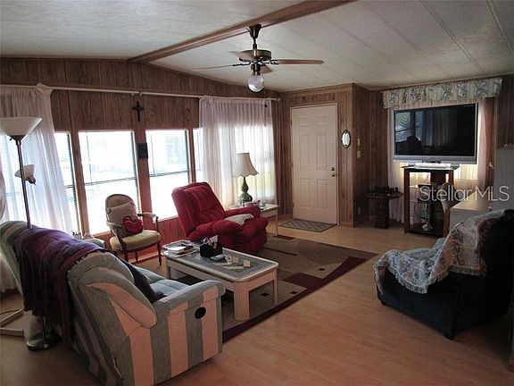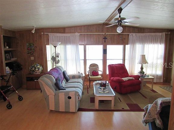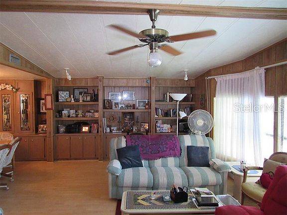 This is the manufactured home to see if you are looking for quality, floor plan, size and location including the co-op share located in Ranchero VIllage Largo, FL. From the spacious kitchen design to the formal dining area with built in china display and storage to the living room that measures 26×13 with attractive wall shelving and cathedral ceiling, you appreciate the quality. Move on to the relaxing family room and wet bar area with ceiling fan. No going out to the shed for your laundry here; conveniently located off the kitchen. The main bath also serves as an ensuite to the guest bedroom. The master bedroom has 2 closets, 1 being a walk in, with double bowl vanity, garden tub and separate shower. The Florida room is 25 feet long. A very short walk to one of the communities 3 pools. Partially shaded back yard from mature Avocado and Mango Trees. Ranchero Village is Largo, Florida's premier Resident Owned community, this property includes the co-op share with market value of $55,000. Investing here also entitles you to the use of the other 2 pools, 3 clubhouses, spa, saunas, fitness, tennis, bocce ball and more. A relaxing Gulf of Mexico sunset is just 20 minutes away, or enjoy the Gazebo extended into the North Lake in the park.