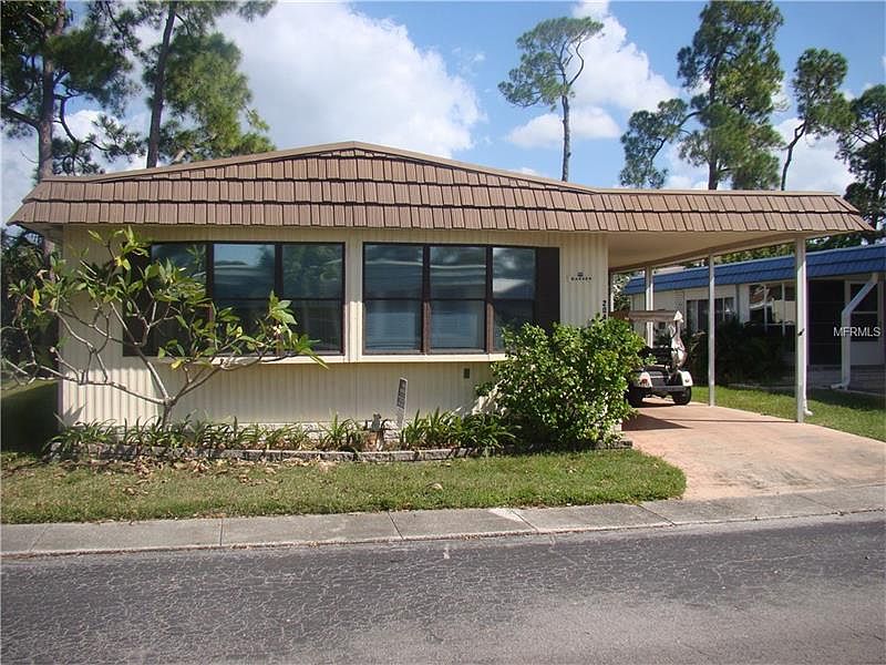 This property includes the co-op share. OWN THE LAND; ownership of this home includes ownership in the entire 127 acre exceptionally well maintained resort style community. A much desired DOG SECTION home. Private back yard. Spacious home in move in condition. Factory built Florida room across the front, opening into large living room with cathedral ceilings. Walk thru kitchen with lots of counter and cabinets. Large master bedroom. Roof over about one year old, transferable warranty. Fully furnished. You can have your cat(s) too. The "Ranchero Village Lifestyle" includes unlimited use of 3 pools, spa, 3 clubhouses, shuffleboard, saunas, horsehoes, mini golf, golf driving cage and lots of activities and events in our clubhouses.