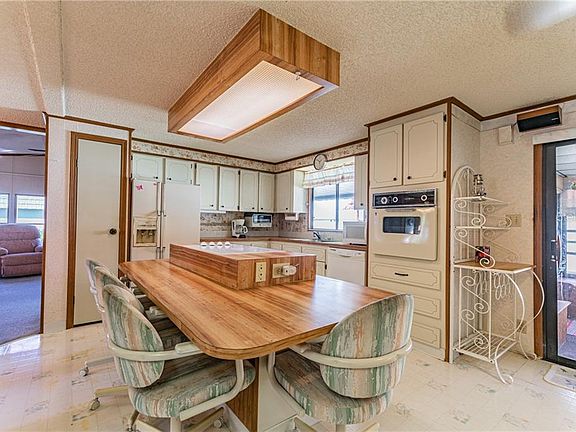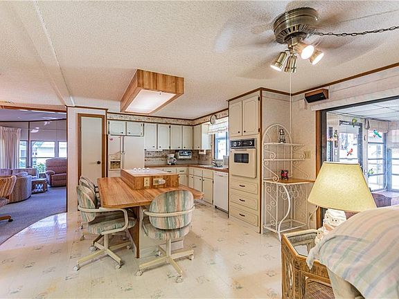 This spacious 1344 square foot dog friendly manufactured home includes the co-op share. Bring your dog, up to 30 pounds or your inside cat. Has a wonderful just like a house floor plan. The cook top/dining island kitchen is 14 feet long and 13 feet wide with lots of cabinets and counter space for those great meals and get togethers. You and your guests can enjoy conversations in the kitchen from the family room adjoining the kitchen. The master bedroom features 2 walk in closets and large mirrored double bowl vanities. The living room is over 23 feet across with cathedral ceilings. The hall bath has direct access from the guest bedroom. If you are looking for a home with the washer and dryer inside and not in the shed, you found it. The 22 foot long raised Florida room provides an additional 240 square feet of living area. Ranchero Village is a premier resident owned community in Largo, centrally located to the Tampa Bay cities of Clearwater, St. Petersburg and Tampa. Ranchero Village has it all: 3 pools, spa, saunas, fitness, 3 clubhouses, shuffleboard, billiards, tennis, bocce ball, horseshoes and miles of private streets for biking, walking or golf cart riding. The season is upon us for lots of activities in the clubhouses to include concerts, dances, parties, meals, theater and more.
