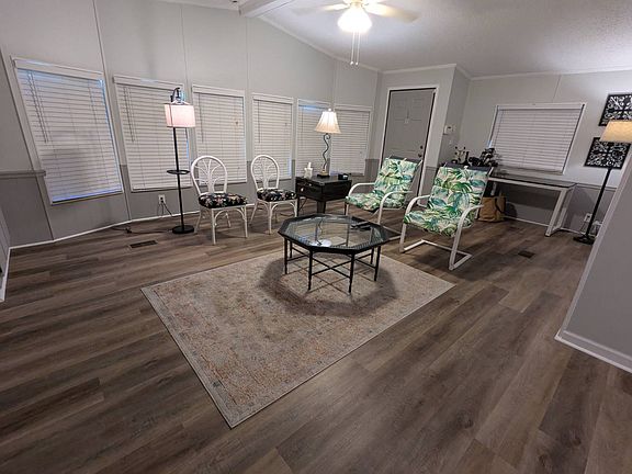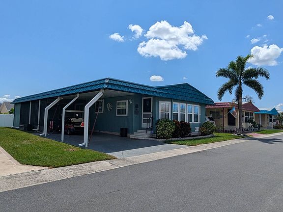 Welcome Home to this gorgeous/spacious and unfurnished 2 bedroom 2 bath mobile home located in a 5 star 55+ park called Ranchero Village MHP. Enjoy the spacious open floor plan (over 1200sq ft) all throughout this lovely home which offers bay windows in the front living room as well in the back bedroom too. There is a large walk-in closet off Master Bedroom. Guest bedroom has access into main bath. This lovely home has many upgrades which includes: Outside has been freshly painted! New Vapor Barrier! New Windows and a New Sliding Glass door! Newly remodeled kitchen with granite counter tops, new cabinets, sink, faucet, a new large Island with more cabinetry and granite counter top. The Refrigerator is brand new with beautiful oven/range and overhead microwave! All NEW Sub flooring with gorgeous waterproof luxury Vinyl plank flooring throughout! New Blinds all throughout the home as well! The kitchen and dining area walls have been drywalled. Enjoy having an inside laundry room with washer and dryer! There is a Roof-over and hurricane poles and tie downs. The C/H/A has been serviced and maintained on a regular basis and is working great! The 2 car carport has been widened and newly opoxied with custom pretty paint! Enjoy having your morning coffee or evening beverage sitting in your large screened in Lania! This lovely home is in the pet section of the park with breed and weight restrictions. Priced under market value will surely sell fast!! Located in Ranchero Village Mobile Home Park offering 3 clubhouses, swimming pools, hot tubs, fitness center, shower rooms, game room, lighted tennis courts and billard room, 3 ponds, 4 fountains, and covered dock. Must be 55+ and be able to pass the park's background and credit check application. Lot rent is $1250.00 per month includes highspeed internet and cable for an additional $40, also includes lawn maintenance, garbage and all amenities. Please call Sandra the Listing Agent to discuss or to set up a viewing.