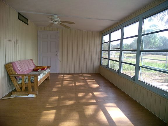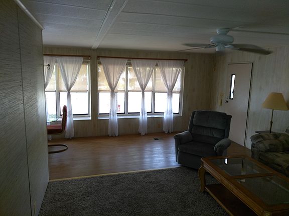 BRAND NEW ROOF AND SKIRTING! Beautiful home on one of the largest lots in this premier 55+ community! Located on the perimeter in the desirable dog section. Enter into the spacious living room with a wall of windows and abundant natural light. Updated laminate flooring and nicely painted interior create an airy feeling. The dining room has charming built ins and there's plenty of cabinet space in the kitchen. The master bedroom is huge with a generously sized walk in closet and on-suite bathroom with a walk in shower and updated vanity. The 2nd bedroom is just down the hall with the 2nd bath steps away. Sliders from the dinette lead into the large Florida room with laminate flooring and a ceiling fan. Walk a few steps down into the laundry room with ample storage. Carport and driveway easily fit 2 vehicles. Ranchero Village is a very active community with regular social gatherings! Drive your golf cart to any of the 3 clubhouses, 3 pools, spas, fitness room, tennis courts, 10 court shuffleboard, billiard rooms, saunas, bocce ball, pickleball, or horseshoes! HOA fee includes cable, internet, garbage, water, sewer, and lawn mowing! The community just put in beautiful white vinyl fencing along the back property lines, supplying excellent privacy. This property includes a co-op share which provides ownership interest in the 127 acre 55+ community. Just 20 minutes from incredible white sand beaches! Close to shopping and public transit. Video walk through available!