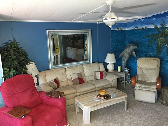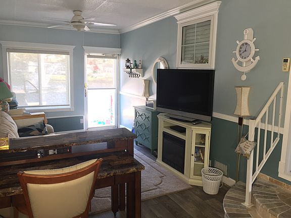 ON the Lake, From the lakefront view to the many indoor upgrades, this charming 2-bedroom, 2-bathroom manufactured home has it all. The kitchen has newer high-end stainless steel appliances and a trash compactor; the utility room has another trash compactor, vanity with sink, newer refrigerator, and a high efficiency washer and dryer. The bathrooms feature beautiful faux finished Venetian Plaster walls and crown molding. Both bedrooms are carpeted, have crown molding, and the closets are outfitted with custom “California Closets” shelving. Living room bay windows and bedroom windows have electrically controlled blinds. Installed within the past three years, there are new insulated glass windows throughout the home, a new roof, new home insulation and siding, and a new Heat Pump air conditioner that can be controlled from a smart phone. There is a video doorbell, which is also controlled from a smart phone. There’s an abundance of storage available, with a large pantry closet, utility room storage, and two outdoor storage sheds. There is an attached carport, and the decorative driveway is spacious enough to accommodate at least 4 cars. The 6-person hot tub and golf cart are included with the home. Owner is willing to negotiate some furnishings.