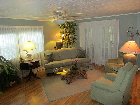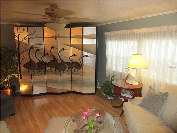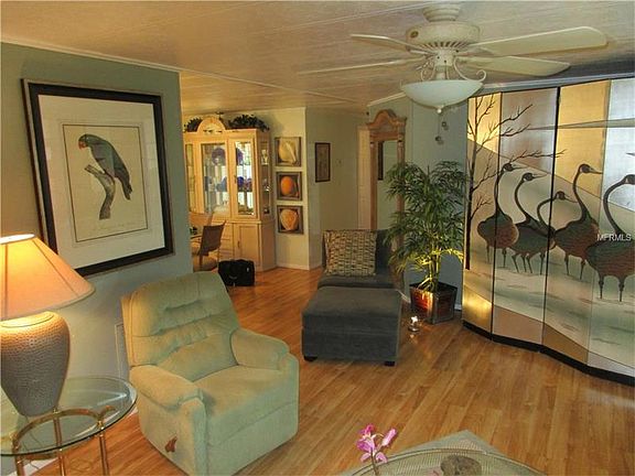 A RARE OFFERING. Research available shows this is only the senond waterfront home on the market with a co-op share in over 5 years. Now is your opportunity to own a truly extraordinary property with direct waterfront in this 55 plus vacation style community, yet have privacy created by planning years ago of trees and other landscaping providing privacy. Your water view is nonetheless still here from the 20 foot long Trex deck. Alternatively, enjoy and entertain on the large covered patio just steps from the deck. This is all accesed via the Florida room looking onto your waterfront deck. The seller is offering every possible upgrade you can imagine, both inside and out. Enjoy the kitchen with custom cabinets,granite counter tops and accent lighting. Nearly new stainless refrig. and matching stove and dishwasher. Laminate flooring throughout. Upgraded bathrooms. Every room professionally decorated. Large walk-in and additional master bedroom closet. Bonus entry room. Outside, enjoy Florida friendly plants, vinyl siding, roof over, high quality no maintenance insulated glass replacement windows, expanded width carport with an expansive rain/sun deflection system. Cul-de-sac lot. All of this in a resort style community centrally located in the heart of the Tampa Bay area. Available to you as an owner: 3 pools, spa, saunas, fitness, 3 clubhouses, shuffleboard, tennis, bochee ball, horseshoes and more. Some furnishings included in the sale. Tagged items not included plus some of small incidentals.