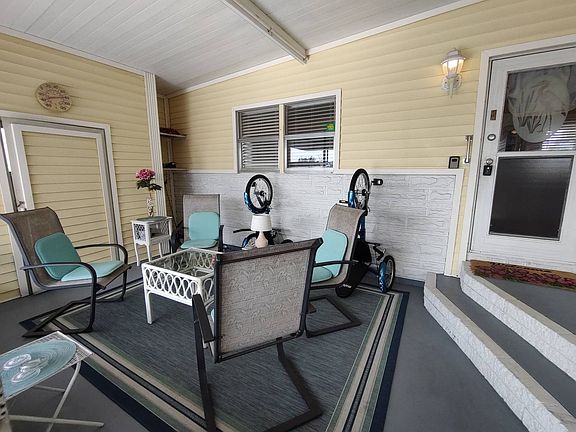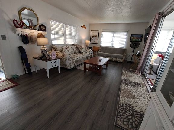 This home won't last long on the market! 2 bedroom 1 bath Doublewide on Corner Lot! Listing price is $49,900 with a Golf Cart with Brand New Batteries! This home sits on a beautiful corner lot in Ranchero Village. Enjoy your coffee or evening beverage sitting outside in your front screened room or back yard patio with pavers and enjoy your view of your backyard which over looks a Gazebo courtyard . Outdoor has Sensor Lighting . This home is being called a 2 bedroom because Florida room has been converted into a bedroom. Brand New Central AC Unit ,Freshly Painted throughout, Fully Furnished with two TV's, Comes with Dishes, Utensils and all making it Turn Key and move in ready! New waterproof Laminate Flooring throughout other than Carpeting in Master Bedroom. Kitchen has been updated with new Cabinets with built in trash cupboard as well. Granite Counter Tops, Deep Stainless Steel Kitchen Sink with new Faucets. Bathroom has been remodeled with Tile Encloser, New Vanity, Sink, Granite Counter Top and New Faucet. Master bedroom has adjustable Queen bed which gives extra comfort for sleeping! This home sits only 3 house down from the clubhouse, pool and laundry facilities. This is in a no pet section. Home can be rented out. Ranchero Village is a 5 star park offering 3 different Clubhouses, with Pools, Hot Tubs and lots of activities! Please call listing agent !