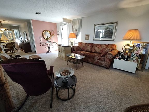 Welcome home to this Fully Furnished and Beautiful Home!! Offering all kitchen Utilities, Dishes and everything you need in a Kitchen! Move in ready and Turn Key!! This home is a Triple Wide 2 bedroom , 2 bath Mobile Home. Enter this home through a custom glass front door and you are home to a spacious stunning home. It has an additional living space added on from a past screen room. Dry wall in Main Living areas, Beautiful Berber Carpeting and beautifully decorated with an open floor plan! Remodeled and upgraded Bathrooms with Tiled shower enclosers and floors! Main bath has double sink. Bedrooms have numerous closets and Master bedroom has private Bathroom. Double Roof over was done aproximately 2013. Central AC in good working condition which has been serviced and maintained. Laundry room in shed with washer and dryer staying. All Kitchen Appliances and many other extras in the kitchen also staying. Lots of kitchen Cupboard space with large Pantry. Refrigerator is 3 years new. Ceiling ducts throughout which provide better AC cooling. This home sits on such a spacious corner lot with the beauty of flowers all around. Front entrance has a garden arch of a beautiful foilage of flowering vined plants with a small water fountain and pond! Carport offers a 2 car side by side parking with space for Grilling and lounging on the comfortable lounge furniture and Gas/Charcoal Grill which owner is leaving. Ranchero Village is a 5 star senior park. Offers 3 Pools, Hot Tubs and Clubhouses throughout the park with lots of community activities! Lot rent is $1050.00 plus utilities. Please call Listing agent for showing! This is a must see and won't last long on the market!