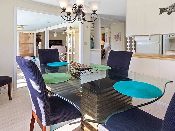 Wow! What a beautiful, very Floridian style 2 bedroom 2 full bath, split bedroom plan (one bedroom on one side and the other bedroom on the other side) home in the premier 55 Plus community of Ranchero Village in Largo. Viewing the photos and video reflect the pride in ownership of this home, the style being unique to Ranchero Village. An open plan, providing the opportunity to enjoy all areas of the primary living area with no wall partitions. Light and bright with professionally painted walls and easy to maintain laminate flooring throughout this home. All of the furniture, wall decor, linens, window dressings, kitchenware are included in the sale, turn key move in ready. 5 ceiling fans provide nice air distribution. Both bedrooms have large closets. Outside, enjoy the raised wood deck, barbecue grill and view of the open space backyard (no homes behind you). Oversize shed with washer and dryer and plenty of storage. Insulated double roof (roofover). Two car parking. Ranchero Village has more amenities than any other manufactured home community in Pinellas County, to include 3 pools, 3 clubhouses, spa, 2 saunas, 10 court shuffleboard, 4 tennis courts (2 illuminated for night play), pickleball, bocce ball, 3 lakes, 1 with a large gazebo, covered barbecue pavilion, putting green and driving cage, horseshoes, billiards and a new fitness building with new exercise equipment. A short drive to 2 international airports and award winning Gulf of Mexico beaches. Ownership: Land-lease Age Restrictions: 55+ (1st occupant ), 45+ (2nd occupant ) Pet Policy: 1 indoor cat, no dogs. Lot Rent: $1,050/monthly includes; sewer, trash, lawn care, and all community amenities (more than any other community in Pinellas County). Pass Ons: $88/month on average; water, sewer, cable t.v and high speed internet (at a discounted rate) All listing information is deemed reliable but not guaranteed and should be independently verified by licensed professionals. We do not guarantee or warrant the accuracy of this information, measurements, or condition of any property.