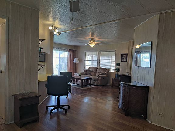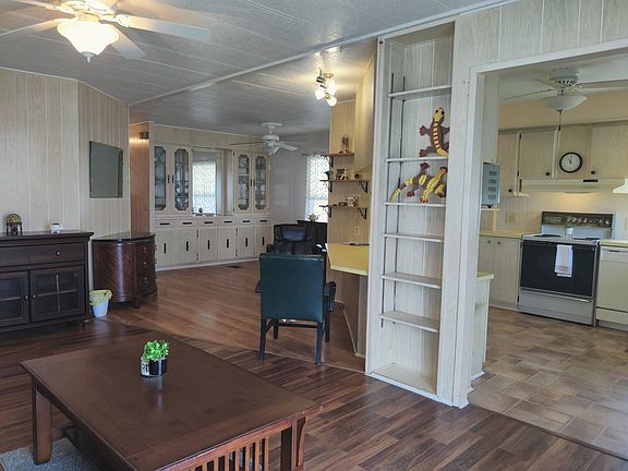 The listing agent for this home is Sandy with SLR Mobile Homes This home is located in a 55+ Age Required Retirement Community, Indoor Cat only. The lot rent for this home is $706.00 per month and includes, Trash, Lawn Mowing and all of the many park amenities. Motorcycles are permitted in this park. This partially furnished home has 2 bedrooms, 2 bathrooms and 1,152 square feet of living space (not including the Florida room 200 square feet), 8 ceiling fans, roof over and a new wheelchair ramp and deck/porch. The living room has a sliding glass door, laminate flooring, ceiling, built in shelving and large windows. The dining room has a large built in hutch with glass door upper cabinets and plenty of lower cabinets below for plenty of storage space, ceiling fan and laminate flooring. The kitchen is big with lots of cabinets, ceiling fan, 2 big windows, lots of counter space and a breakfast bar. The guest bedroom has a big window, ceiling fan, laminate flooring and a nice sized closet. The guest bathroom has a large vanity with storage, large medicine cabinet, a tub/shower combination with grab bars for added safety and a stackable washer and dryer. The large Florida room has new carpet, lots of windows, ceiling fan and a wall A/C unit. The shed is located just off of the carport with plenty of space for extra storage. For more information, to schedule a showing or to make an offer, please call Sandy Ranchero Village is a 5 Star community of manufactured homes located between the Gulf of Mexico and Tampa Bay. Ranchero Village is a 55+, international community of over 900 homes that many happily call Home. Our residents represent nations from all over the world. Most have come to call this their permanent home while others join us seasonally. No matter how long or short the stay, wonderful friendships are formed and life long bonds are made. Within the 11 miles of our enclosed community, you can find 3 beautiful Club Houses. Each Club House has a heated pool and full Laundry Facilities (if your home does not have a washer and dryer). Most residents use their golf carts, bikes, or walk to go to the club house events and pools. Community Amenities: CLUBHOUSE, COMMUNITY EVENTS, PICKLEBALL, PLANNED ACTIVITIES, SHUFFLEBOARD, SWIMMING POOL, TENNIS COURTS AND FITNESS CENTER ***DISCLAIMER: The information in this listing is believed to be true and accurate, and has been provided by the seller. SLR Mobile Home Sales, LLC cannot guarantee or warrant the accuracy of this information or the condition of any property. Since Mobile Homes are sold AS IS, we recommend that you inspect any home that you are interested in purchasing and recommend that it be independently verified by appropriate professionals. The buyer assumes full responsibility for obtaining all current rates of lot rent, lot rent payment method, lot rent due dates, fees associated with the mobile home community, park, or home from the community/park manager. Buyer is also responsible for getting any park rules, regulations and lease agreements from the community/park manager. SLR Mobile Home Sales, LLC is not responsible for the quoting of or providing of said fees, requirements or documents.