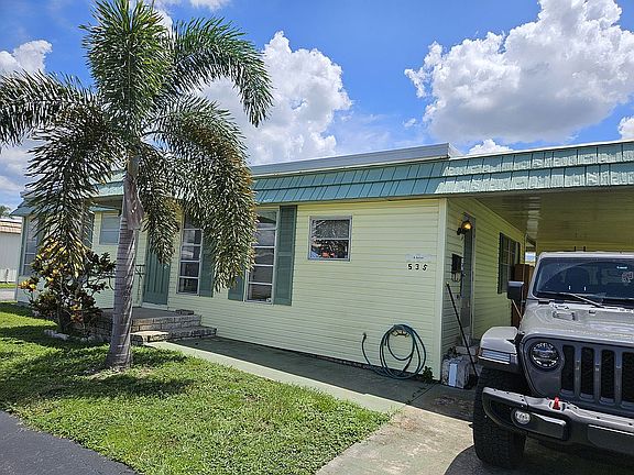 Lot 535 is a spacious 2 bedroom 2 bathroom ~1200 sq foot doublewide home with a large enclosed raised porch, carport (fits 2 cars), and seperate laundry shed with Washer and Dryer. The exterior vynil is soft buttercream yellow, with a spring green trim. The home has a mansard and Roof Over type roof keeping it cool inside all day. We keep the air at 82 and its very comfortable. The home itself is very spacious and has lovely natural lighting. The master suite has an en suite bathroom with walkin shower. The hotwater heat was replaced in 2023. The air and heat have been maintained under service contract 2x per year and run well. The larger shared bathroom has a full tub. The home needs a few repairs and some updating so the price is low to give you room to work with. Lot rent is currently ~$789 but will increase when sold to $1250 which includes cable, water, sewer, lawn care, and garbage. Can be shown most any weekday 830am to 530pm or evening or weekends by appt.