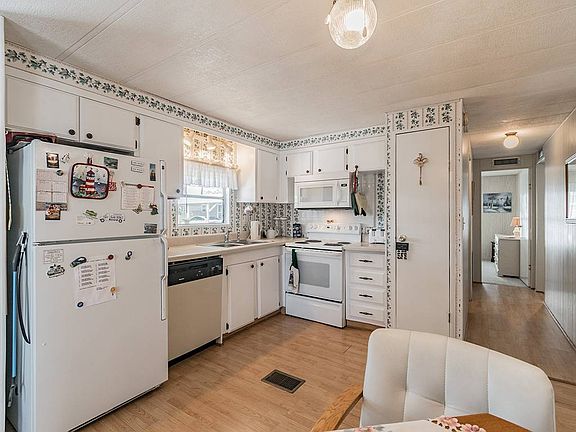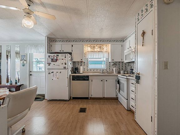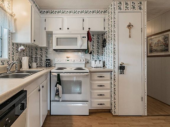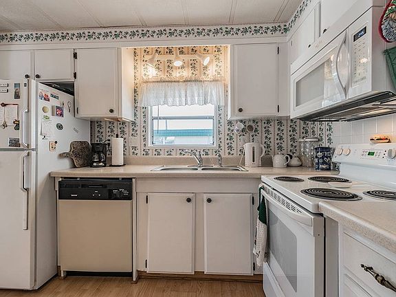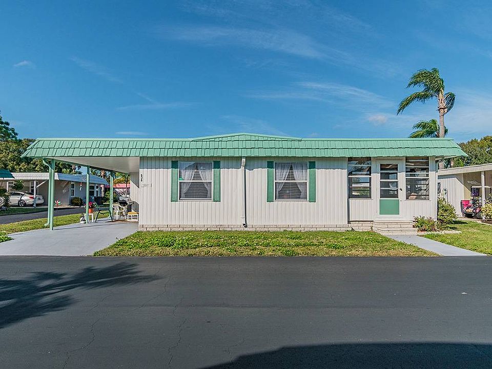 Extremely nice, turnkey, move in ready, two bedroom, two bathroom, double wide manufactured home located in the premier 55 plus resident owned community of Ranchero Village Largo, FL. This home is fully furnished that includes everything pictured. Very nice wood flooring throughout making everything light, bright, and easy to clean. The living room is furnished with reclining loveseat, single reclining chair, coffee table and flat screen TV, giving it the perfect space to sit and relax or enjoy company. The Florida room has plenty of comfortable chairs and seating for those nice evening conversations with its own door to the outside and surrounded by windows bringing in the fresh Florida breeze. Dining room has a very nice round table with seating for four and a glass display for your finer dinnerware. There is a door entering into the kitchen directly off the carport for easy and convenient access. The kitchen is bright with an over sink window and is fully outfitted with white appliances including an oven, refrigerator, over the stove mounted microwave and dishwasher with a tall pantry for storage. There is also table space for two in the kitchen for those nice morning breakfasts. Full guest bathroom including full tub and shower, toilet, sink, and linen closet. The guest bedroom features two large windows making it nice and bright with natural light, a full wall of closets and two twin beds with a full size dresser. Master bedroom features wood floors with a king size bed, two large windows, and a connected master bathroom featuring a low step tub and shower. The master bedroom also features a nice size walk in closet. There is a very nice open space garden lot in the rear of the home with a lovely gazebo for use by the homeowner. This is a wonderful manufactured home that has been well taken care of, nicely furnished with upgrades making it perfect for a turnkey winter paradise getaway or comfortable retirement home. One indoor cat okay. Ranchero Village is a manicured 127 acre premier resident owned community centrally located in the Tampa Bay region of Largo Florida, about a 20 minute drive to the beautiful sunsets over the Gulf of Mexico, or watch the sunset from one of the 3 pools or spa. Enjoy 3 clubhouses with activities all winter. Stay in shape with the fitness center or join in a game of horseshoes, shuffleboard, tennis, bocce ball, billiards or mini golf, it is all here and included in the fee of $664 monthly, that includes cable, internet, lawn care, sewer, trash and recycling collection.