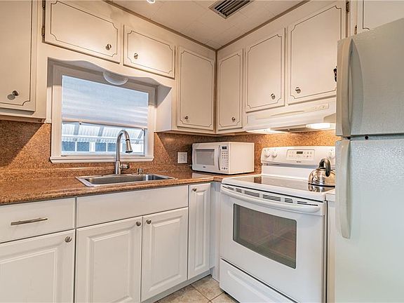 This exceptionally clean and well maintained double wide mobile home in Ranchero Village Largo, Florida includes the co-op share. Very nice kitchen with upgraded base cabinets and countertops including a ceramic cook-top stove and newer dishwasher. With two windows in the kitchen there is a wonderful natural light and breeze. Beautifully upgraded wood flooring throughout the home with tile flooring in the bathrooms. Very nice and spacious master bedroom that is light and bright with lots of natural light having a corner window and a large sliding glass door opening to the screened porch. Master bedroom includes a king size bed with a walk-in closet, and a connected full bathroom with tub and shower bath. Guest bedroom has two vertical windows offering plenty of natural light and accommodates a queen size bed. There is a walk-in closet with it's own full en-suite or attached bathroom with a shower bath. The screen room spans the entire rear of the home offers a wonderful place to sit and enjoy the winter months, looking out onto the open space area. The roof over has a transferable warranty. Fully furnished and sold with all the furniture, fixtures, kitchenware and linens. There is a very nice open space garden area in the rear of the home with a lovely gazebo for use by the homeowner. This home does not need any work whatsoever, turnkey, move in ready to make it your new home!