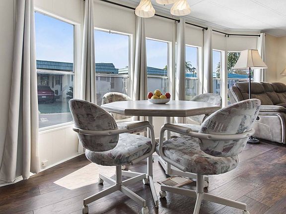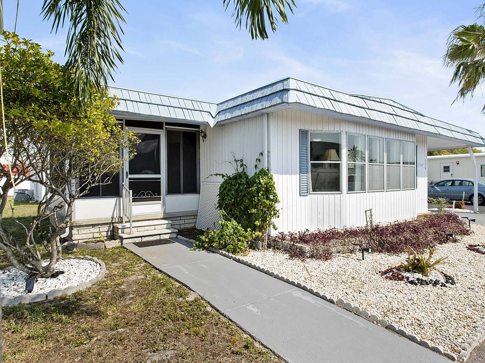 CLICK THE VIRTUAL TOUR LINK FOR A VIDEO WALK THROUGH - Welcome Home to this 2 bedroom and 2 bathroom unit with an open concept floor plan. Enjoy the light and brightness that fills the Dining room and Living room from the wall of windows. The Kitchen has new countertops, a dishwasher and a large Pass through into the main living space. The comfortable and spacious living space makes this great for entertaining. The continuous wood plank laminate flooring gives this home an updated look as well as easy to maintain. Sliders lead from the living room to the fully windowed Sun Room, making this a great space to enjoy your morning coffee or read a book. This home is completely furnished with a coastal feel in the Master bedroom, private en suite bathroom and walk in closet. The second bedroom is a nice size with extra closet space. Oversized rooms, ceiling fans, china hutch, storage shed with a washer and dryer, Bike, TV's and so much more makes this home a great opportunity to enjoy Retirement Living!! The newly landscaped exterior is maintenance free and provides a generous carport with a patio set. Enjoy visiting with friends and family while you catch one of our great Florida sunsets from your home situated on the corner of the cul de sac. Stay active with the many social clubs, pools, clubhouses, tennis courts, fitness center and of course golf cart welcome park. This pet friendly section 1 dog up to 30 lbs allows you to gain quick access to the West entrance. Close to shopping, restaurants, our Famous beaches, airports, Tampa, St. Petersburg, Clearwater, as well as so much more to explore. So don't miss this great opportunity to enjoy the Florida Lifestyle either full time or part time. Ownership: Land-lease Age Restrictions: 55+ (1st occupant ), 45+ (2nd occupant ) Pet Policy: 1 indoor cat or 1 dog up to 30 lbs. Lot Rent: $1,050/monthly includes; trash, lawn care, and all community amenities (more than any other community in Pinellas County). Pass Ons: $68/month on average; water, sewer, cable t.v and high speed internet (at a discounted rate) Ranchero Village has more amenities than any other manufactured home community in Pinellas County, to include 3 pools, 3 clubhouses, spa, 2 saunas, 10 court shuffleboard, 4 tennis courts (2 illuminated for night play), pickleball, bocce ball, 3 lakes, 1 with a large gazebo, covered barbecue pavilion, putting green and driving cage, horseshoes, billiards and a new fitness building with new exercise equipment. A short drive to 2 international airports and award winning Gulf of Mexico beaches. All listing information is deemed reliable but not guaranteed and should be independently verified by licensed professionals. We do not guarantee or warrant the accuracy of this information, measurements, or condition of any property.