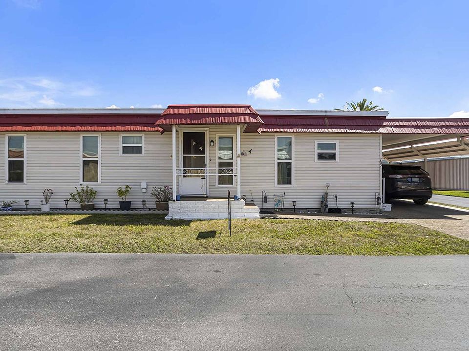 CLICK THE VIRTUAL TOUR LINK FOR A VIDEO WALK THROUGH - Come and see this beautiful double wide home! This 2 Bedroom 2 bath home features so many updates. Fresh paint throughout the entire home. Newer Roof installed 2021 with a 15 year transferable warranty. Newer windows and vinyl siding installed 2021 with a lifetime transferable warranty. 3 Ton AC installed 2021 with a 5 yr manufacturer warranty. Both Bathrooms totally renovated, paint, plumbing, flooring, tub and shower. Oversized master bedroom with double closets and extra touch of beauty with crown molding. You can sip your morning coffee in the very cute and updated Florida room that has a unique landscaping privacy behind. All you need is your personal decor touch in this beautiful home. Call today for your private showing!! Ownership: Land-lease Age Restrictions: 55+ (1st occupant ), 45+ (2nd occupant ) Pet Policy: 1 indoor cat, no dogs. Lot Rent: $1,050/monthly includes; trash, lawn care, and all community amenities (more than any other community in Pinellas County). Pass Ons: $68/month on average; sewer, cable t.v and high speed internet (at a discounted rate). Ranchero Village has more amenities than any other manufactured home community in Pinellas County, to include 3 pools, 3 clubhouses, spa, 2 saunas, 10 court shuffleboard, 4 tennis courts (2 illuminated for night play), pickleball, bocce ball, 3 lakes, 1 with a large gazebo, covered barbecue pavilion, putting green and driving cage, horseshoes, billiards and a new fitness building with new exercise equipment. A short drive to 2 international airports and award winning Gulf of Mexico beaches. All listing information is deemed reliable but not guaranteed and should be independently verified by licensed professionals. We do not guarantee or warrant the accuracy of this information, measurements, or condition of any property.