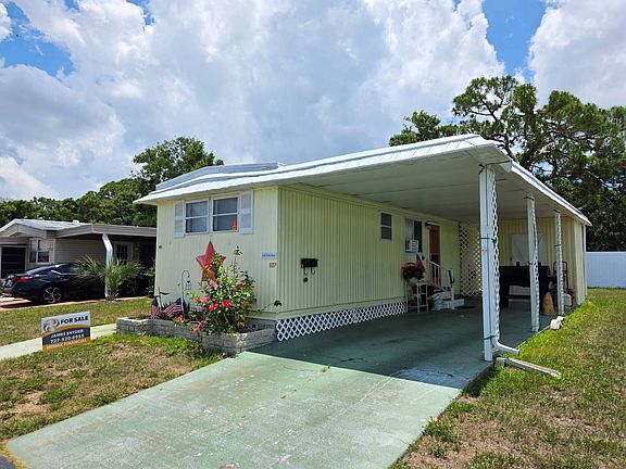Welcome to your dream retreat in the heart of the renowned Ranchero Village-a premier 55-plus community in Largo, FL, celebrated for its vibrant lifestyle and Vegas-style amenities. This beautifully updated and spacious 2-bedroom, 2-bathroom double-wide home is ideally located in the sought-after Pet Section, offering both comfort and charm. You and your guests will love arriving at your cheerful bright yellow home, accented with crisp white-trim Mansard styling. Features include Thermopane windows, shutters, gutters, and a durable TPO roof-over with transferable warranty. A two-car covered carport, dual storage sheds with washer and dryer, and a cozy 12x10 screened room offer plenty of function and flair-perfect for sipping your favorite beverage while soaking up the sunshine and fresh Florida air. Step inside the open-concept split floor plan and be captivated by the modern light fixtures that shine over a bright white kitchen island topped with butcher block counter-tops. The kitchen boasts 19 cabinet doors and drawers, laminate counter-tops, tile back-splash, and modern appliances including a two-door refrigerator, glass-top stove, and microwave. All of this sits atop new sub-floors with luxury waterproof vinyl flooring, protected by a new vapor barrier that insulates updated plumbing and duct-work-distributing air efficiently through a 6-year-old central heat and AC system, with two additional window AC units for those who enjoy an extra-cool breeze in the summer. The guest bathroom features a stylish wooden panel accent wall and a custom tile walk-in shower, combining function with artistic flair. The main bathroom includes a shower and bathtub combo, perfect for those who embrace the mermaid life and love to unwind after a day filled with the fun and relaxation that this vibrant community and city provide. As a resident of Ranchero Village, enjoy access to an unparalleled lineup of amenities, including: Three heated swimming pools Three beautifully maintained clubhouses Tennis, bocce ball, and shuffleboard courts Putting greens Village Room for community events Spa and modern fitness center All of this luxury comes with an astonishingly low lot rent of only $1325.00/month, which includes water, sewer, garbage, landscaping, cable TV, high-speed internet, and telephone (electricity not included). This home is priced to sell quickly due to an emergency relocation needed by the current owners to assist loved ones in need. Bless yourself while being a blessing to others by seizing this rare opportunity. Call now to schedule your walk-through of this unbelievable, turn-key opportunity in one of Largo's most elite and welcoming 55+ communities!