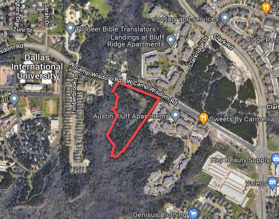 Undeveloped land located just west of Clark Rd on Camp Wisdom Rd. This property resides in the Dallas South zone map as S-9 in PD 521. As defined the maximum zoning density for multi-family is 24 units per acre with no minimum lot size. Buyer is responsible to verify all details of zoning.
