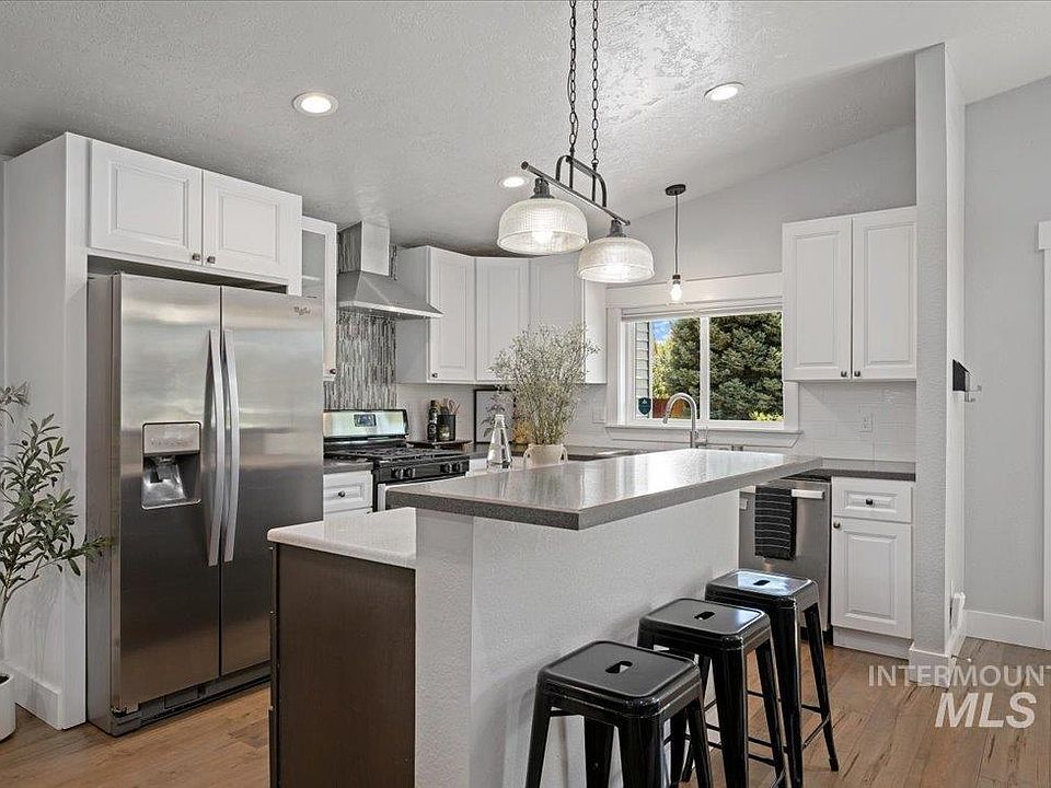 Beautifully updated with incredible versatility! Tucked away in a quiet NW Boise neighborhood, this property is perfectly positioned in a central location off Gary Lane with access to the nearby shopping centers, the Boise River Greenbelt and fabulous foothills trails. Ideally suited for multi-generational or multi-family living, this home provides an opportunity for income producing potential. The spacious floor plan of the main residence offers an open concept design with 2 bedrooms and 2 bathrooms. Vaulted ceilings and the well-appointed kitchen accentuate the primary living spaces. The oversized primary suite offers direct backyard access, generous walk-thru closet and en-suite bath with tiled shower, dual vanities and water closet. A secondary living quarters above the 2-car garage (EV charging) hosts a full kitchen, dining and living area, private balcony, with 2 additional bedrooms and full bathroom. With exceptional versatility, it can be accessed either via private entrance or from inside the home.
