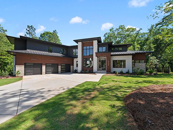 This custom-built home by AR Homes is the one to see. Nestled on a prime 1.35 acre lot, the property features a striking facade with a harmonious blend of modern design elements and natural materials. As you approach the home, the driveway leads to a spacious three-car garage, seamlessly integrated into the architectural design. The grand entrance boasts a double-height glass door, inviting you into a world of luxury and comfort. Inside, the home offers an open-concept floor plan with high ceilings and an airy, spacious feel. The large windows throughout ensure that each room is bathed in natural light, creating an inviting atmosphere. The modern aesthetic continues with clean lines, high-end finishes, and meticulous attention to detail, making this home a perfect blend of form and function. The backyard is a true sanctuary, providing endless possibilities for relaxation and entertainment. It is fully pool-ready, offering a perfect spot to create your own private oasis. Whether you envision hosting elegant outdoor gatherings or enjoying quiet, serene moments, this space offers the ideal canvas. Situated just a short walk from the beautiful Falls Lake, this home provides not only luxury and comfort but also convenience and access to nature. It is a perfect retreat for those seeking a modern lifestyle in a tranquil setting. *secondary bedrooms and offices are virtually staged*
