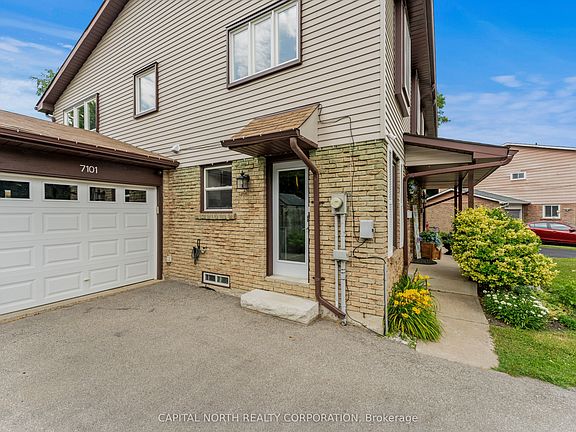 Welcome to 7101 Cadiz Crescent a home that shines with pride of ownership. Thoughtfully updated and exceptionally well maintained, this semi-detached residence is move-in ready and designed for both comfort and lifestyle. From the bright open-concept main floor with new windows to the modernized kitchen with quality appliances, every detail has been cared for with intention. Built-in dining storage adds practicality, while the spacious family room with fireplace flows seamlessly to the outdoors. The backyard is truly a highlight one of the largest lots on the street offering exceptional privacy, space to host gatherings, relax in the hot tub, or enjoy endless possibilities for outdoor living, complete with two storage sheds.Upstairs, three well-proportioned bedrooms and a refreshed 4-piece bath provide everyday comfort. The fully finished lower level expands the living space with a large recreation area, exercise room, and laundry area featuring a convenient 3-piece bathroom.A private drive with parking for up to six vehicles and garage access to the backyard enhance the homes functionality. Ideally situated near schools, parks, and trails, this property also boasts quick access to highways 401/407 and public transit, ensuring seamless connectivity for commuters. Families will appreciate being close to Meadowvale Village Public School, David Leeder Middle School, Meadowvale Secondary School, and the option of St. Marcellinus Catholic Secondary nearby. A rare opportunity to enjoy a turnkey home that blends lifestyle, location, and value all in one. *EXTRAS* HWT is a rental (2024). Roof redone in 2010 (approx). Second floor windows updated in 2023, Living Room windows updated in 2022 and 2024.
