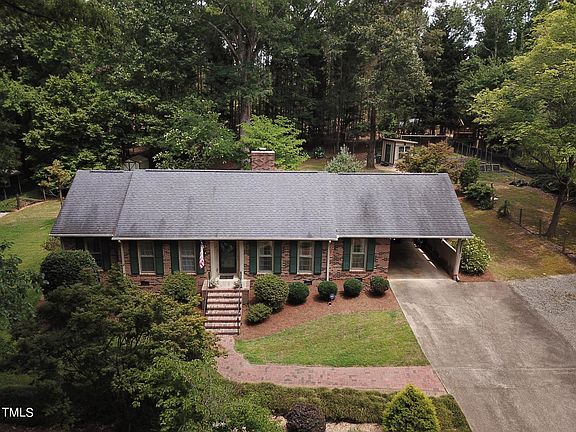 Remarkable ranch home fully updated in 2020 to include all new kitchen cabinets, appliances, quartz countertops w/farmhouse sink, new plumbing, new light package, updated baths, flooring and the list goes on and on. Private yard perfect for homestead with fenced yard and garden area. Detached garage/workshop w/ fully insulated commercial grade plumbing including outdoor shower. Great location for commuting anywhere in Triangle.