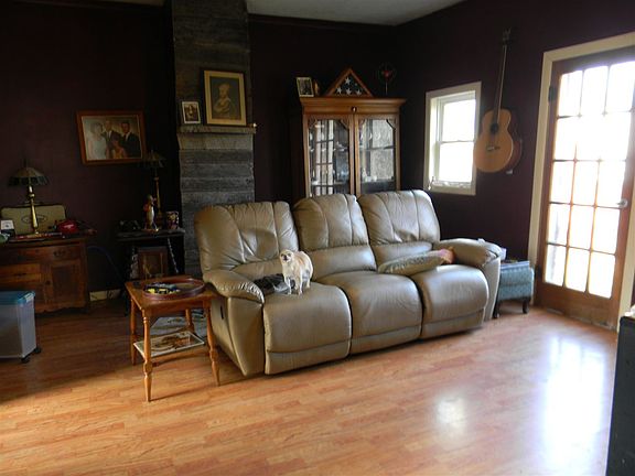 1860 farmhouse on 40 acres in northern Owen County. 2 story home, 3 bedrooms, 1 1/2 baths with updated kitchen, family room, hardwood floors , in last 5 yrs new roof, siding, furnace/AC. Nice creek runs through the 17 acres of pasture across the road with additional fenced pasture behind house and woods to enjoy. Outbuildings include workshop/man cave, chicken coop, utility barn and a charming studio with deck. Put your own spin on the past with the charm yesteryear.