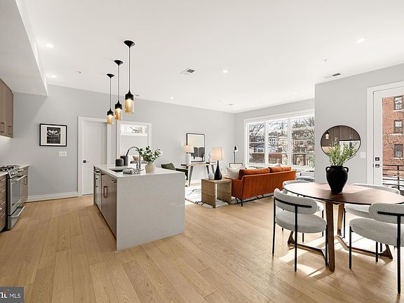 Welcome to 7101 Georgia Ave NW, Unit #5 at The Delaney—ideally located between Elder St and Dahlia St NW, just steps from The Parks at Walter Reed and nestled between three thriving neighborhoods - Takoma, Shepherd Park, and Brightwood! This sophisticated 2-bedroom, 2-bathroom condo combines contemporary style with everyday conveniences. The open-concept layout boasts high ceilings, expansive windows, and modern wide plank hardwood floors. The gourmet kitchen features sleek quartz countertops, a waterfall island, premium stainless steel appliances, gas cooking, and ample cabinetry, blending style and functionality. The spacious living area is bathed in natural light, making it perfect for entertaining. Just off the living room, a private balcony provides a perfect spot to enjoy the vibrant city scene. Both bedrooms offer expansive windows, recessed lighting, walk-in closets with Elfa shelving, and ensuite baths. The bathrooms are beautifully finished with designer fixtures. The primary bathroom includes a spacious walk-in shower and double sink vanity, while the second full bath offers a relaxing soaking tub and is accessible from both the living area and the second bedroom via a pocket door. This condo is equipped with modern conveniences, including ample storage, a full-size stackable washer and dryer, and a security system with a Ring doorbell. The building is pet-friendly and offers bike storage on the lower level. Additionally, there is ample residential street parking available on Dahlia St NW and 9th St NW. Garage parking is also available for rent across the street at the Parks -ask for more details. Built in 2018, The Delaney is a contemporary condo building located directly across from The Parks at Walter Reed, a vibrant campus offering green spaces, outdoor events, and a thriving retail and dining scene. Nearby conveniences include Whole Foods, Starbucks, Jinya Ramen Bar, The Charmery artisan ice cream shop, and more. Beyond The Parks at Walter Reed, The Delaney is close to the Takoma neighborhood in DC and Takoma Park, Maryland, both known for their unique boutiques, cafes, and eateries, including Donut Run, Lost Sock Coffee, Motorkat, and Cielo Rojo. Rock Creek Park is also nearby, offering scenic trails perfect for hiking, biking, and outdoor leisure. With the Takoma Metro station just minutes away, commuting is both easy and convenient. The Delaney provides an exceptional lifestyle where urban amenities, green spaces, and modern comforts seamlessly converge. Welcome home! ** Ask for details about financing options with up to $10K in closing assistance, as little as 3% down, no PMI, and competitive interest rates***