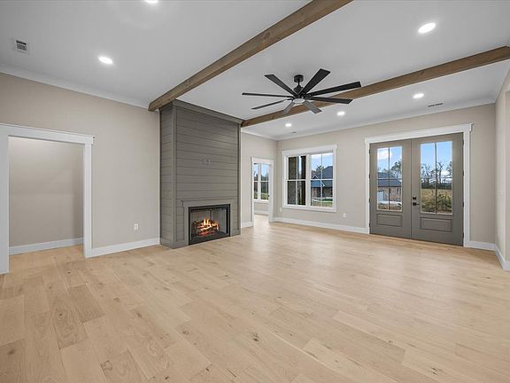 Sumptuous 1 level home in Forsythia Farms with endless designer touches and luxury features! A large great room perfect for getting cozy by the fireplace or entertaining on a grand scale in the expansive dining area and chef's kitchen with a gas range! Let the party spill out on to the enormous, covered patio and take in the private back yard. Retreat to the large primary suite with a spa like bath or get caught up on some work in the large bright office. There's also a big laundry room and room-sized pantry! Attention to detail that includes, custom cabinetry, 9 ft doors, wood inlay ceiling relief, tongue and groove wood porch ceilings, ceiling beams, and custom primary closet shelving.