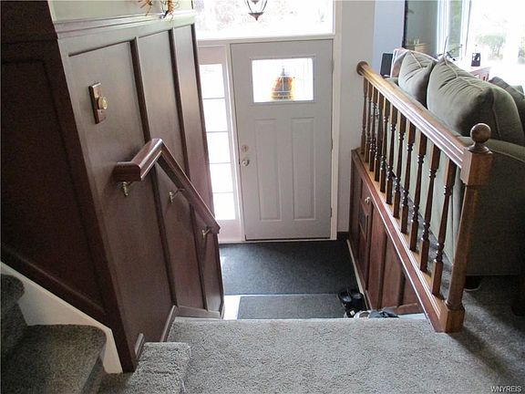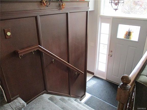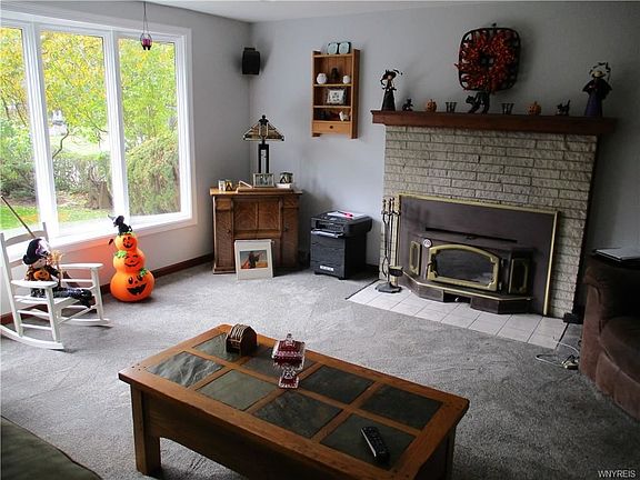 1/2+ acre on the escarpment offers amazing views all year round. Updated kitchen, baths, furnace & C/AC, slider with encased blinds, carpets, flooring, windows, driveway sealed, garage door, appliances and MORE! Unique entrance offers custom wood entry area leading to open 2nd floor with sunlit living room & woodburning insert for cozy fires, surrounded by brick trim, & wood mantle. The large dining room & open kitchen offer flexible living for larger or smaller groups! The 3rd level offers 4 spacious bedrooms & 2 full baths. Lots of closets too! The 1st floor is where you'll find the family room with custom cabinetry & storage, plus a freestanding woodstove. There's also a half bath and slider to stone walled patio that overlooks the "ledge" of the Niagara Escarpment. Beautiful yard with mature trees & a seasonally changing view! Tax records show 3 bedrooms, but there are 4 bedrooms.