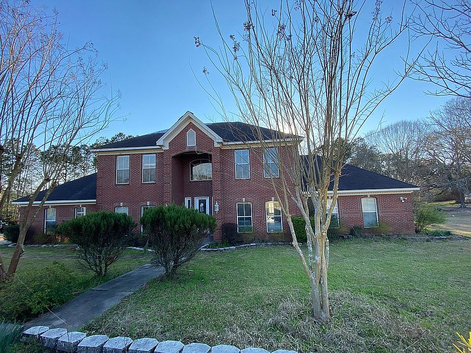 Single Family Home for sale by owner in Lucedale, MS 39452. Quiet area, beautiful view of national forest,3.99 acres. Five bedrooms, 4.5 baths (2 Master bedrooms with custom baths downstairs), Den, Formal dining room, breakfast nook with bay window, granite countertops in Kitchen, built in Oak bookshelves throughout house, sunroom, spiral staircase, wetbar with sink. Laundry room with sink. Upstairs- T.V. room/playroom, excercise room, 3 bedrooms with 2 baths/Jack & Jill bath. Attached 2 car garage, 2 car carport with attached workshop. Fruit trees,pear, plums, figs,muscadine. Fenced back yard, beautiful oaks, beautiful view of Pascagoula National Game Reserve, large wood deck on back of house.