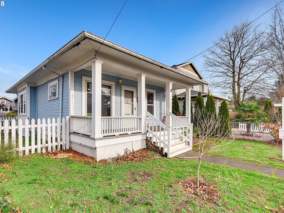 Cute Bungalow in Foster Powell lives large. Lovely front porch. Tall ceilings in Open Living room and dining room with good original wood floors. Kitchen has ample storage & counter space. Newer range & fridge. Cozy nook, separate laundry, nice bath & bedroom with window seat. Covered patio & fenced yard. Alley access with gated parking. Storage galore in 660sf unfinished basement. 100% financing avail. [Home Energy Score = 7. HES Report at https://rpt.greenbuildingregistry.com/hes/OR10051990]