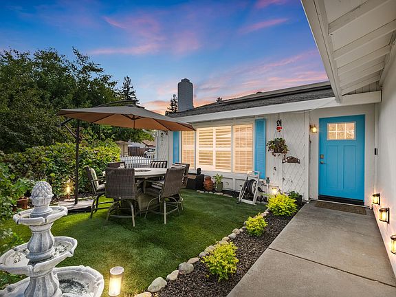 This move-in-ready hidden gem sits on a large corner lot. In this family friendly neighborhood, you'll be among dog walkers and joggers, friendly people with homes featuring large lots and pride in ownership. The front yard features an abundance of productive fruit trees including avocado, orange, plum and jujube. There are luscious table grapes blooming around a tranquil sitting area giving it a peaceful secluded feel for evening dining or playful activities. Inside you'll find a semi-open concept, with a large newly remodeled kitchen/dining area and an extended island for extra storage and counter space along with state-of-the-art smart appliances to match! The living room has an upgraded fireplace and window shutters. Laminate flooring through out most of the home. Bathrooms have updated cabinets and sinks. Modernized recessed adjustable lights throughout the kitchen. There is a whole house fan to cool your evenings and newer A/C unit to cool your days. Leased solar to keep your SMUD bills close to zero. The back features a spacious yard with a covered patio, perfect for a BBQ or outdoor entertainment. New fencing for stability around the property, additional fruit trees and a large tuff shed for storage/office/studio. 2 car attached garage.
