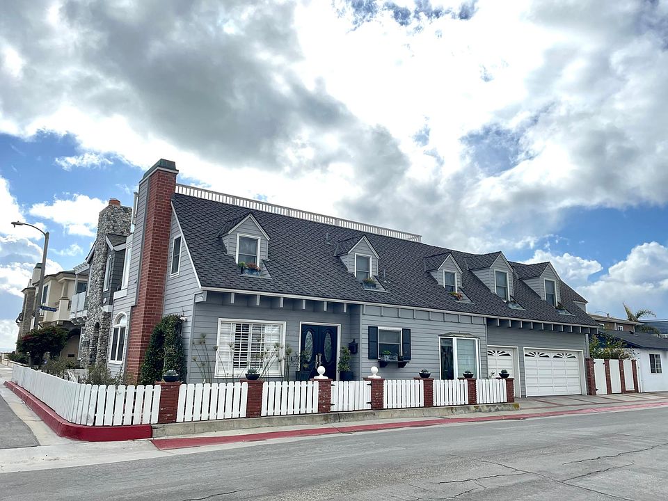 Charming Cape Cod Style Beach House. 2 properties from sand on large coastal lot. Steps to miles of beach with world-class surf, dog run, park, and playgrounds. Neighborhood primarily owner-occupied. Very few short-term vacation rentals. West Newport restaurants and coffee shops across PCH. Boardwalk, Lido Marina Village, Newport Piers, and HB Pier a short beach cruiser ride away. Expansive rooftop deck with ocean and mountain views. 3 car garage w/ epoxy floors and 3 additional off-street parking spaces. Private, shaded side-yard patio with hot tub, enclosed outdoor shower, built-in stainless steel gas grill, and citrus trees. Street side-yard patio with ocean views. Spacious living room with plantation shutters, coffered ceilings, window seat, French doors, and gas fireplace. Wake up to ocean views in master suite. Gas fireplace, dual sinks, jetted tub, and walk in closet in master. Open dining room and kitchen floorplan with bay window and large pantry. Stainless steel appliances with 6-burner stove. Granite kitchen countertops. Hardwood and marble tile flooring. Bonus upstairs flex loft space with mountain views. Second large bathroom upstairs with dual sinks. Ample storage interior and exterior. Custom light fixtures. Top public school district. 1 Year Lease Minimum. Unfurnished. Water, trash, recycling, landscaping, and hot tub maintenance paid by owner. Gas and electric paid by tenant. Inquire about pets. No smokers. Renters insurance required. Furniture negotiable.
