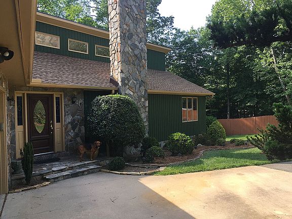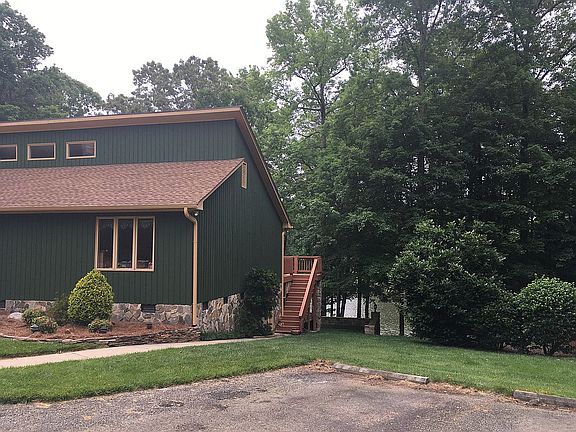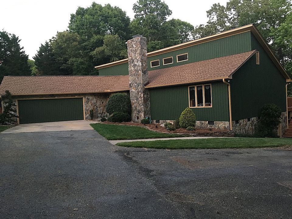 Secluded lakefront home nestled on 2 acres. Contemporary one level with desirable split bedroom style. Exterior is stone veneer and cedar siding. Hillsdale Lake is a rare gem in NW Guilford County offering boating, jet skiing, fishing, swimming in your backyard. Updated kitchen with granite counters, stainless steel appliances, copper sink. Large master suite/bath with separate shower, garden tub, toilet area and spacious walk-in closet. New roof and skylights. Immaculate landscaping with extensive stonework, wall, and stone walkway to lake. Wall of windows across rear of home overlooks lake; almost every room has great lake views plus deck access. Deck spans entire length of house, plus second deck at lakeside. Great room with stone fireplace/chimney, vaulted ceiling, skylights; lots of natural light. Fenced yard, irrigation system, and underground dog fencing. Central vacuum. Workshop space beneath house with concrete pad. Excellent schools.