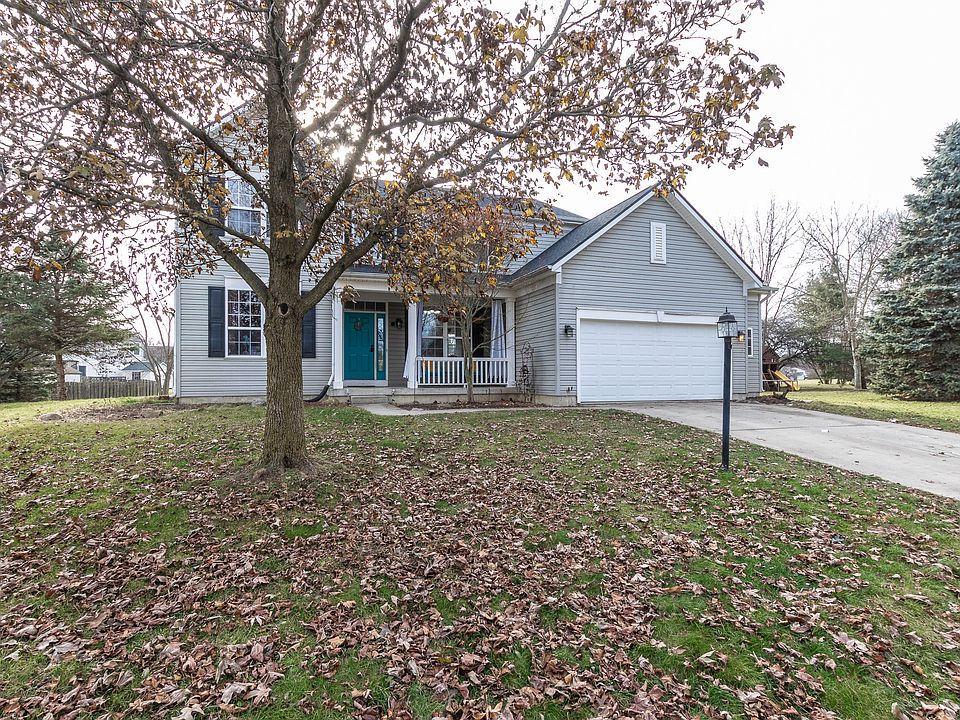 Well maintained home features an enormous private backyard w/park like setting on cul-de-sac! Desirable open floor plan w/2 story entry and 9' ceilings. Open floor plan is perfect for entertaining! The kitchen/family room space is the heart of the home. Kitchen feats stainless steel appliances, center island with bar seating, and walk in pantry and overlooks the breakfast area and family room. Spacious family room has huge windows with views of the backyard and a fireplace as the focal point. Office has an accent wall and great natural light. Dining room offers additional space for entertaining. Main floor laundry room has ample storage. Upstairs, the primary suite offers vaulted ceilings, dual vanities, tub/shower, and spacious walk in closet. Three secondary bedrooms with large closets, and a second full bath featuring dual vanities. The bonus loft space would make a great game room/kids hang out/additional family room. The unfinished basement is a blank canvas awaiting your finishing touches! The garage has a 4' bump out, extra depth, and a service door. Explore outside on the beautiful almost half acre lot. The firepit is the perfect place to unwind from a long day and enjoy some s'mores. Home is nestled at the end of the cul-de-sac. Don't miss the community pool, clubhouse, and park/playground. This truly is a one of a kind home that you don't want to miss!