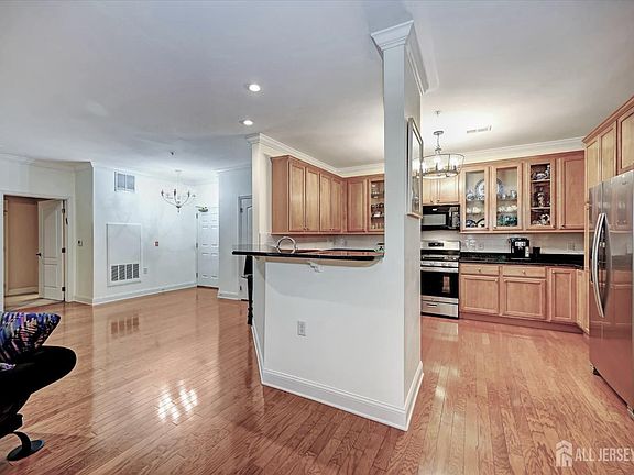 Recessed lightingGleaming hardwood floorsOversized kitchenElegant glass-front cabinetsTrue dining areaAmazing pantryLarge windows