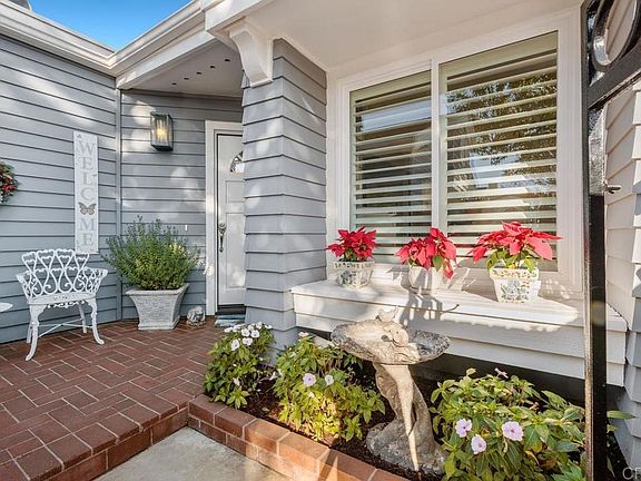 A wonderful opportunity is awaiting you to be in the highly coveted gated community of Sea Cliff! This desirable single-story 2 bedroom, 2 bath home showcases the coastal beach lifestyle! Naturally light and bright, this open floor plan is highly upgraded and ready to move right in! The living room boasts a lovely fireplace with decorative fireglass, shiplap wall and custom built-in cabinets on both sides of the fireplace. Two skylights bring in natural light throughout the day as well as the sliding glass door leading to the private rear patio. The kitchen is a true chef's dream with high-end stainless appliances: 36" Thermador cooktop with center, griddle, custom exhaust hood, Thermador convection oven, Samsung refrigerator and dishwasher. Kohler farmhouse sink, Quartz counters, lighted China cabinet custom cabinets and Velux Low-E skylight round out this spectacular kitchen. Throughout the main living area is a sleek vinyl plank flooring. Energy efficient Milgard windows and patio doors have been added. The primary bedroom has shiplap on the bed wall and offers plush Masland carpet. The primary bath is highly upgraded, and offers Quartz counters and a walk-in closet with the washer and dryer conveniently located there. The secondary bedroom offers beautiful glass doors with black-out shades and custom shutters and lighting. The guest bath is renovated as well with glass tile shower walls, quartz counters and shiplap. The spacious rear patio is a great place to entertain. This private oasis has beautiful plants and greenery to give you the feel of being in your own natural garden. Primary bedroom drapes with rod and Garage cabinets do not convey. Sea Cliff offers a variety of features for the homeowners! You will notice this community has beautifully manicured grounds throughout. There are walking trails around the ponds and streams for your enjoyment. Two pools and spas, 2 tennis courts, a lovely clubhouse with fill kitchen is available to use all within the gated community. You are just minutes to the beach, shopping, restaurants and freeways. In addition to award-winning schools! *See attachment for seller upgrades