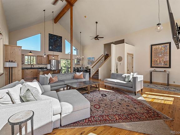 Welcome to your mountain retreat in Evergreen, where modern comfort meets Colorado’s rugged beauty. Perched to take in endless Front Range views, this home is designed for both relaxation and entertaining. Step inside and you’re greeted with soaring ceilings, walls of windows, and warm natural light that frame the ever-changing scenery outside. The open-concept main level brings people together, whether gathering in the living room, a meal in the dining area or sipping coffee at the oversized kitchen island. The kitchen is a true hub, featuring rich granite counters, stainless appliances, and custom wood cabinetry that balances rustic charm with modern convenience. Flow easily from indoors to out with sliding doors that lead to a spacious multi level deck ideal for summer grilling, morning yoga, or watching the sun melt behind the peaks. Upstairs, a versatile loft space makes the perfect home office, reading nook or play area. Multiple bedrooms ensure everyone has a comfortable place to land, whether for family, guests, or weekend getaways. Well thought out bath on the upper level is perfect for sharing space. Retreat to the primary suite, just a few steps down from the main level, where there’s plenty of room to unwind, complete with a spa-like bath and thoughtful finishes. Easy flow from bedroom to backyard through the glass sliding door. The walk-out lower level is made for fun and function: a spacious family room with room for games, a home gym, or movie nights, plus direct access to the outdoors. Beyond the walls of this inviting home, nature becomes your neighbor. Enjoy endless views, gentle terrain, and sparkling night skies, your mountain lifestyle awaits. The property is attractively priced, taking into account a few updates still needed, including some deferred maintenance. Here's your chance to live the mountain life you’ve been dreaming of, in a home that makes every day feel like a getaway.