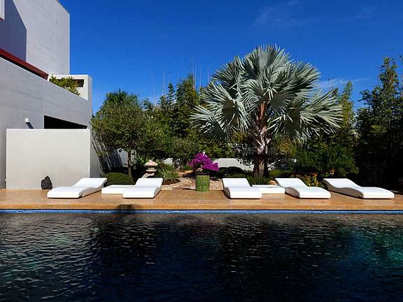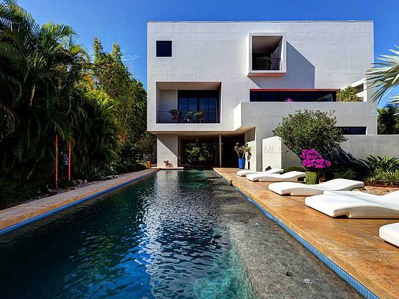 Iconic modern architecture by world-renowned Sarasota architect, Guy Peterson is combined with the ultimate quality of Michael Walker & Associates, Inc. Builders to create this completely walled and lushly landscaped tranquil oasis on the south end of Siesta Key. Indonesian inspired gardens and the blue waters of the enormous pool provide an incredible backdrop for the contrasting white modern home while oversized sliding glass doors and windows; multiple open terraces and geometric lines combine to deliver the perfect setting for true Florida indoor/outdoor living. Stained and polished concrete floors together with rich custom cabinetry work seamlessly alongside marble, stainless steel and copper finishes to create a stunning yet functional feel throughout. The kitchen, open to both the adjacent dining room and living room, boasts commercial grade appliances, custom concrete backsplash and large island with tiered granite and glass bar for both kitchen prep and seating. Tree top views and the Gulf of Mexico in the distance accentuate the simplicity yet depth of these main living rooms. Retreat to the master suite, on the same level, complete with open-air terrace, walk-in shower, two-person spa tub and custom built spacious walk-in closet. The stunning rectangular pool and spa with lounge shelf flow out from under the covered entertaining area. All this just steps from world famous Crescent Beach.