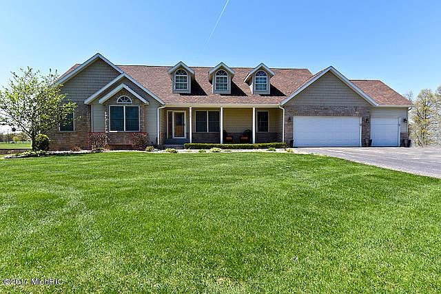 This home is a breath of fresh air. Nicely updated and well maintained. The kitchen is a dream, laid out nicely, plenty of counter space and cabinetry. Counter doubles as a snack bar for conversation with family or quests while cooking. The main level is filled with large windows for great views and lots of natural lighting. 3 bedrooms and 2 full baths on the main level. The lower level is finished with 2 living areas, wet bar, 1 possibly 2 bedroom a full bath and large daylight windows. 32x40 pole barn has a 12x32 covered slab and an additional 12x16 storage shed. Level 4.5 acres has fruit trees and grape vines for your enjoyment. Owner is a licensed MI Realtor.