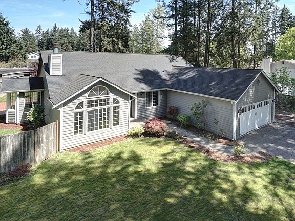 This lovely Rambler on a large corner lot has lots of amenities! Open concept living in kitchen, family & nook w/vaulted ceilings. Featuring new kitchen counter tops & SS appliances. Beautifully remodeled master bath w/quartz counter tops, tile floors & large walk in closet. Master bedroom w/window seat & french doors to access the rear patio which is wired for hot tub. Fresh new carpet in all bedrooms. Rear yard has large deck, patio, sport ct, storage shed & 2nd out building & heat pump.
