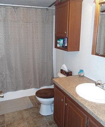 Come see the gorgeous double wide only 3 years old. 2009 Colonial eastland with all the upgraded features, thermo pane windows, ceiling fans, shed, concrete pad, deck, electric is REA and runs $100 avg. per month, propane is $55 avg. per month. Lot rent includes water, sewer, garbage, and lot. All kitchen appliances stay, very well kept home! Beautiful kitchen with large island and ample cabinets.