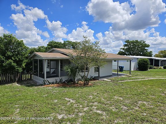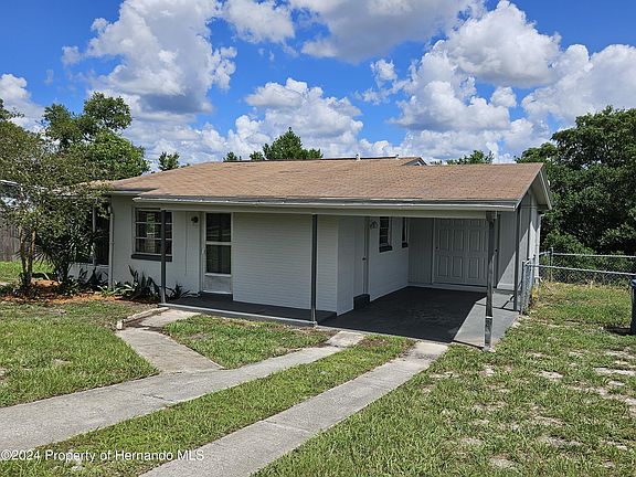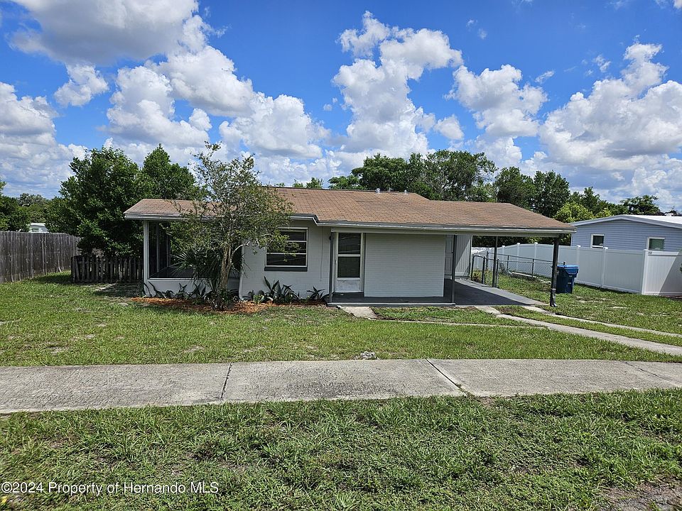 Excellent Opportunity to own a well maintained block home located centrally in Spring Hill. 2 bedroom, 1 full bath, with a carport. Beautiful porcelain tile throughout the home. Remodeled kitchen and bath. Large screen lanai, attached shed under carport, dog run and a large lot. Close to everything. Excellent Investment opportunity.
