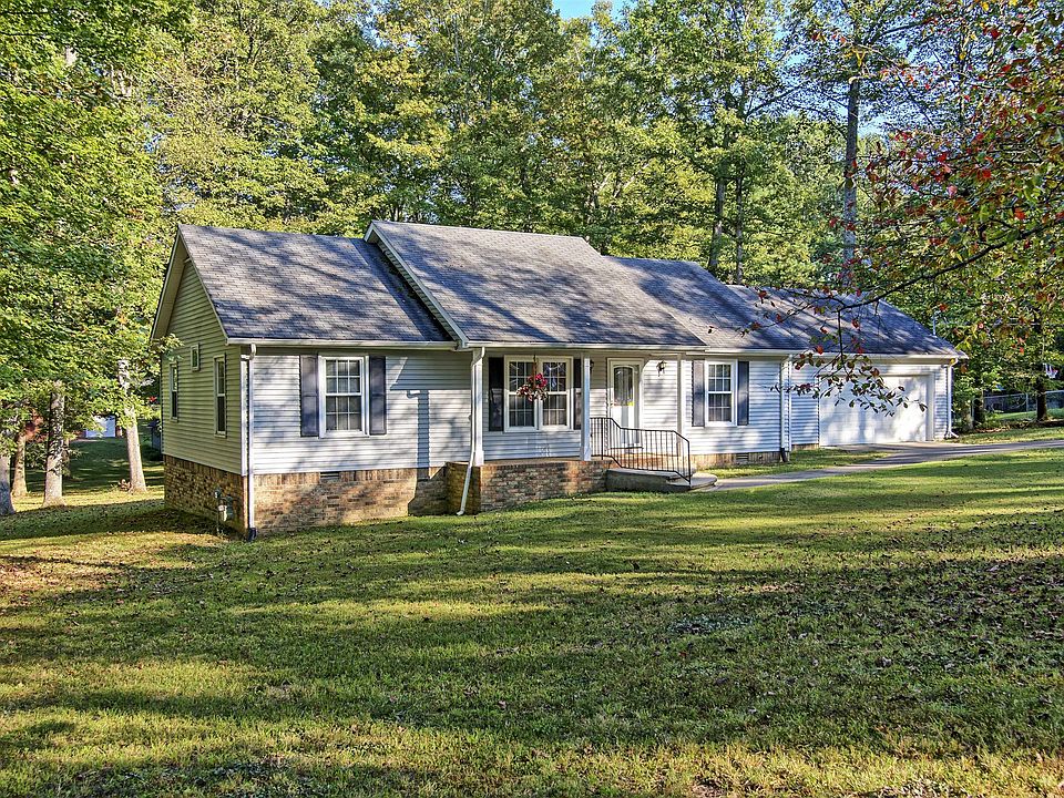 Move-in ready, one level, 3BR/2BA on acre lot! Hardwood floors, eat-in kitchen & separate dining room, 2-car garage, gas fireplace, large yard with mature trees & plenty of closet space! Close to shopping and schools!
